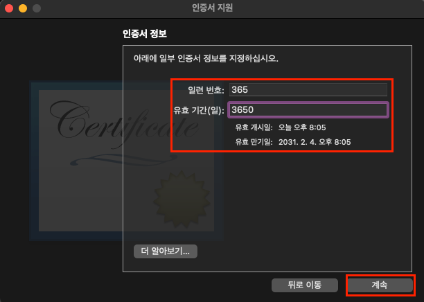 4. 인증서 설정