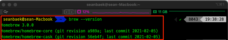 아래의 사진처럼 MacOS 내에 있는 터미널에서 brew --version 명령어를 입력하여 homebrew가 설치되어 있는지 확인해 줍니다.