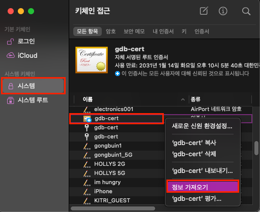 다시 '키 체인 접근'으로 돌아가서 아래의 사진처럼