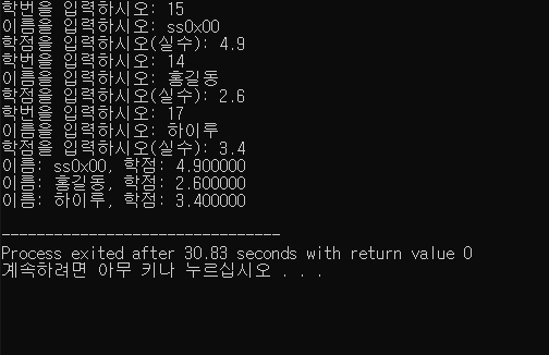 학생들의 데이터를 반복 구조를 사용하여 입력받는다.