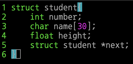 결과적으로 student 구조체들을 멤버 변수인 next를 이용하여 서로 연결할 수 있다.