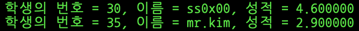 첫 번째 구조체부터 차례대로 구조체의 멤버 값을 출력한다.