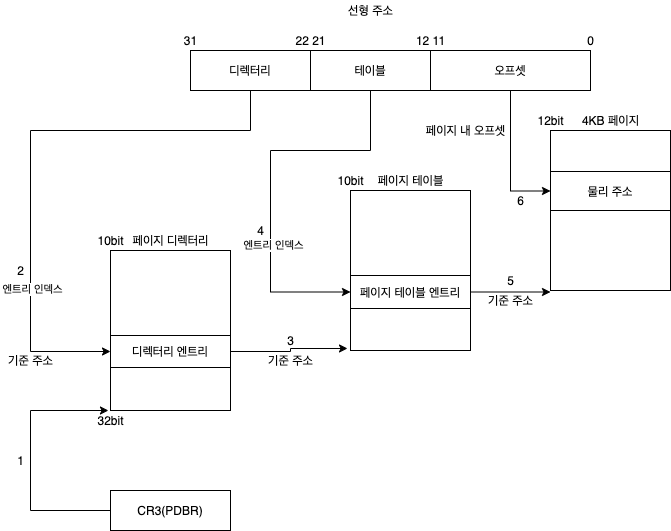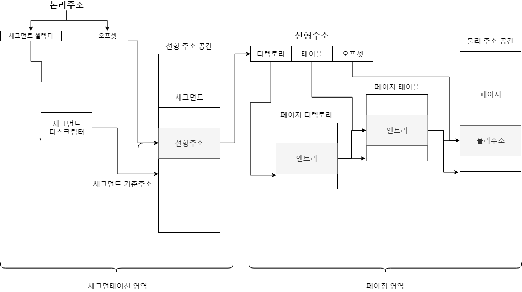 (선형 주소(논리 주소) -> 페이징 -> 물리 주소)
