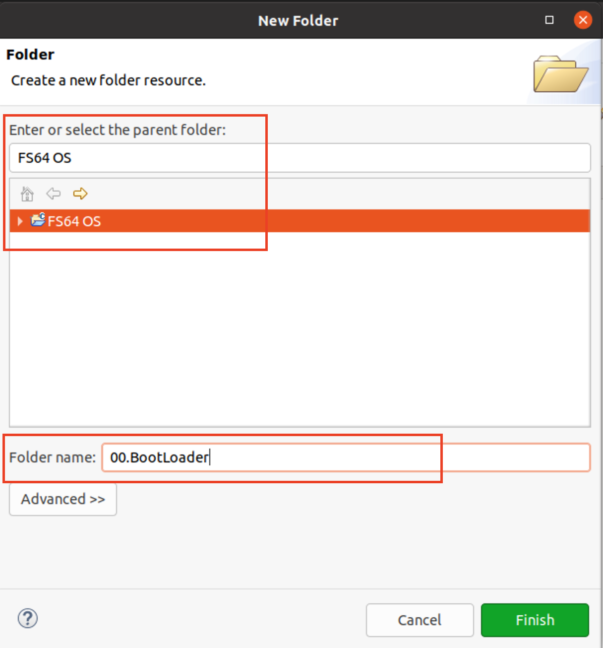 저는 Eclipse의 기본 디렉터리가 /home/sean/FS64 OS이고 해당 디렉터리 안에 FS64 OS라는 이름의 프로젝트 디렉터리를 생성했습니다.