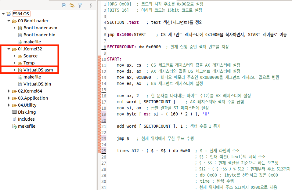 VirtualOS.asm 파일은 가상 OS 소스 파일로 사용할 것입니다.