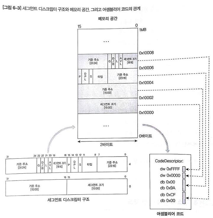 어셈블리어를 사용하여 코드 세그먼트 디스크립터와 데이터 세그먼트 디스크립터를 생성하기 전에 아래의 사진을 이해하고 넘어가야 합니다.