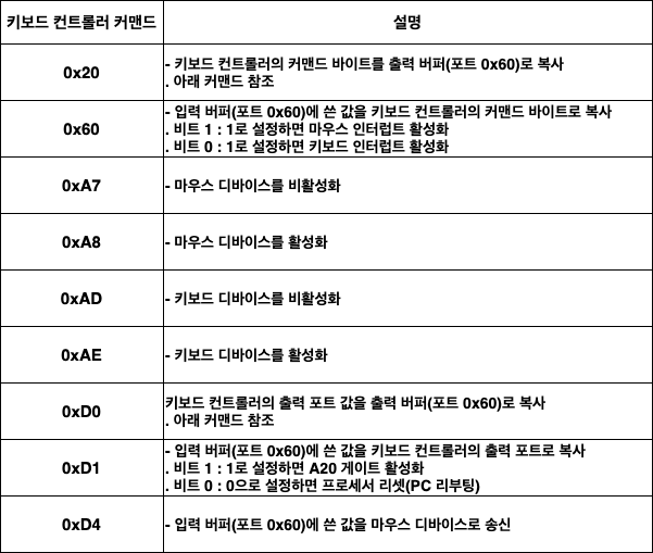 키보드 컨트롤러를 통해 키보드와 마우스를 제어해야 하므로 키보드 컨트롤러의 커맨드에 대해서 자세히 알아야 합니다.