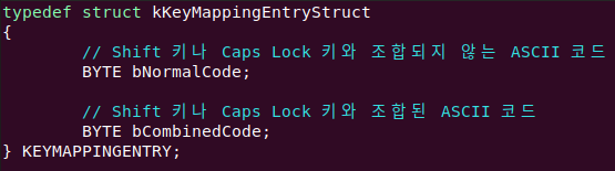 엔트리 자료구조를 정의할 때 고려해야 할 점은 알파벳 키와 숫자 키와 몇몇 기호 키는 Shift나 Caps Lock 키의 상태에 따라서 두 가지의 의미로 사용된다는 것입니다.