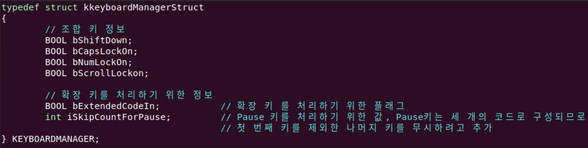 그렇기에 키보드 상태를 저장하는 자료구조를 정의하여 조합 키의 상태를 추가합니다.