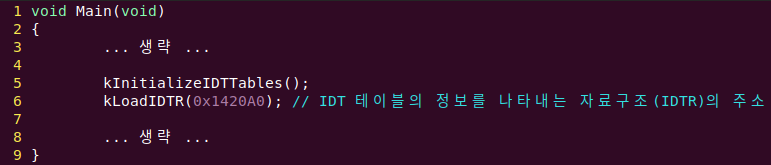 이제 남은 것은 kInitializeIDTTables()와 kLoadIDTR() 함수를 호출하여 프로세서에 로드하는 일이 남았습니다.