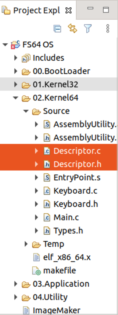 디스크립터 파일은 02.Kernel64/Source 디렉터리에 있으며 파일 내용은 아래와 같습니다.