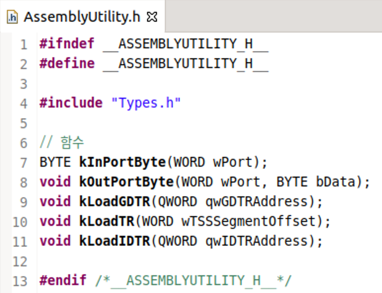 유틸리티 파일은 앞으로 커널에서 사용할 유틸리티 함수를 정의한 파일로 kMemSet() 함수가 여기에 속합니다.