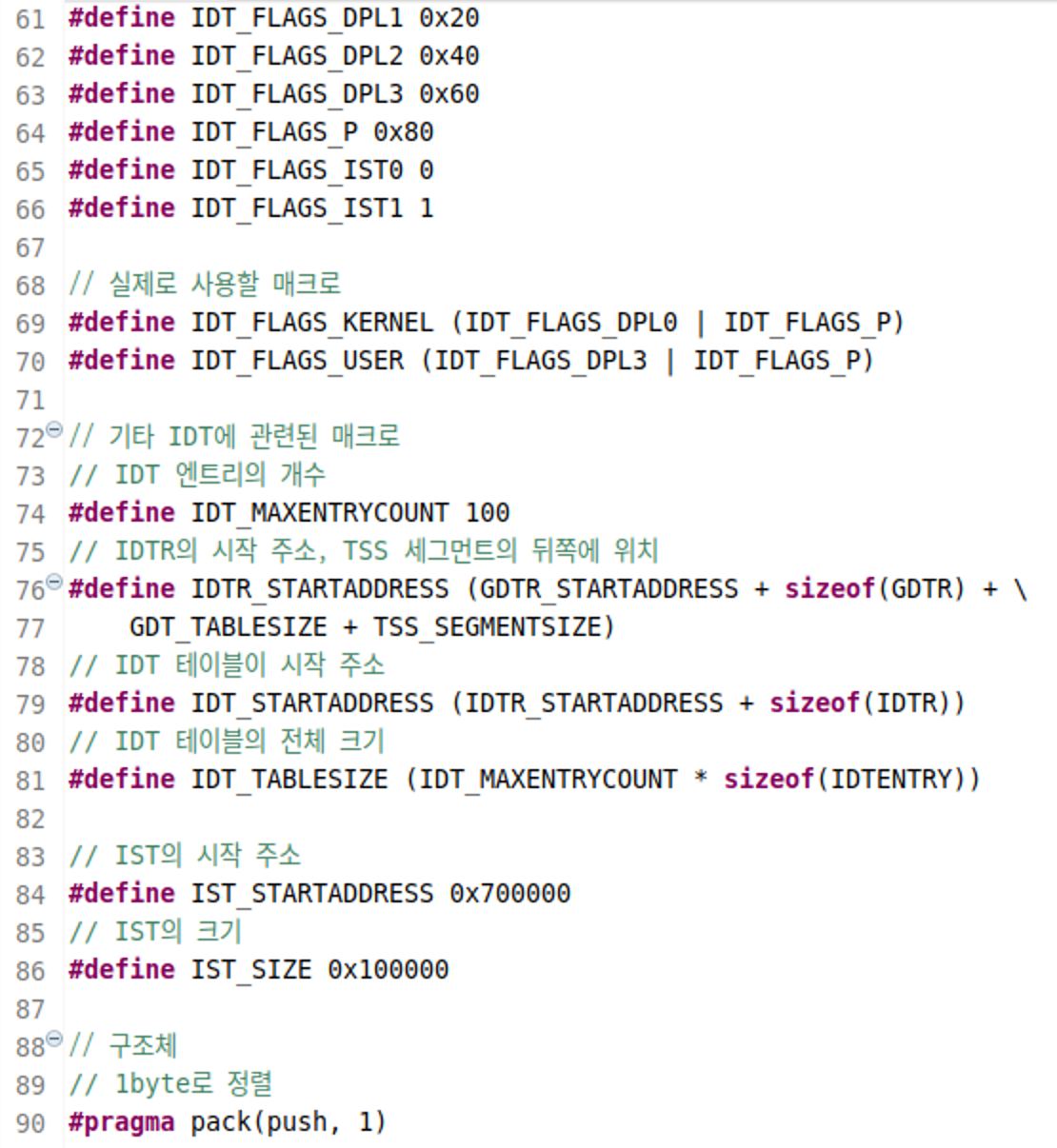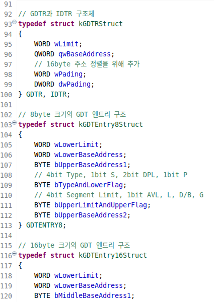 GDT의 시작 주소 같이 상수로 사용된 부분은 유지보수를 위해 매크로로 치환했습니다.