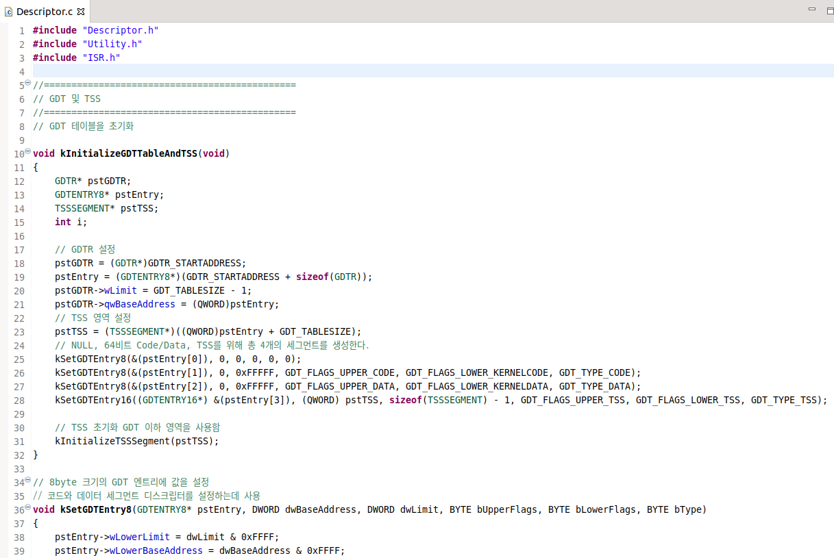 아래의 코드는 02.Kernel64/Source 디렉터리의 Descriptor.c 파일의 내용입니다.