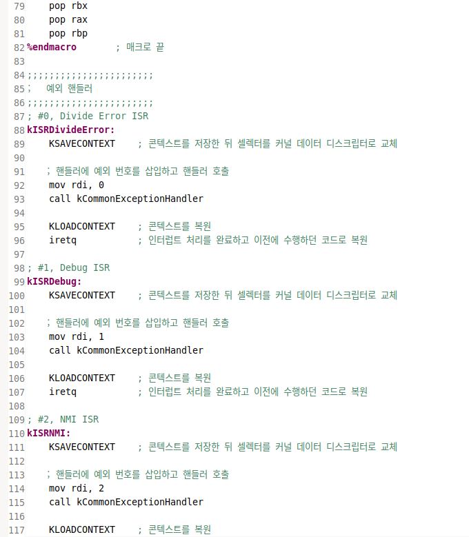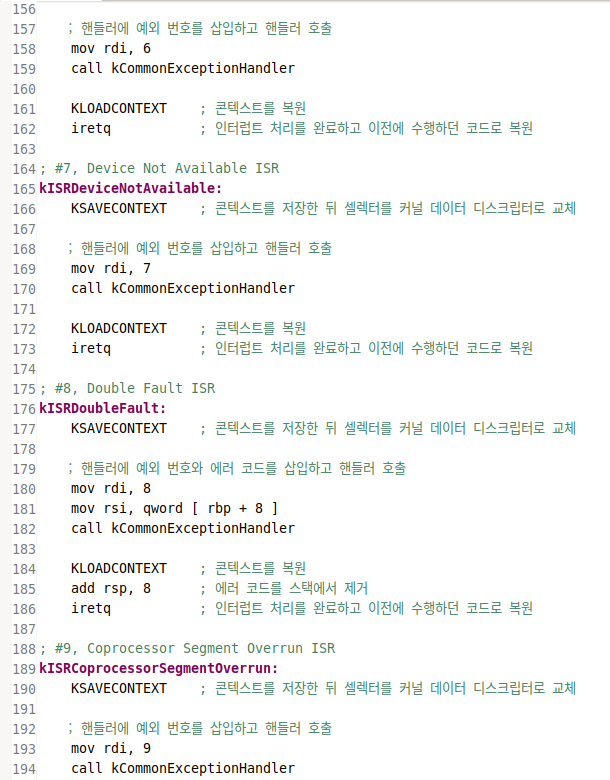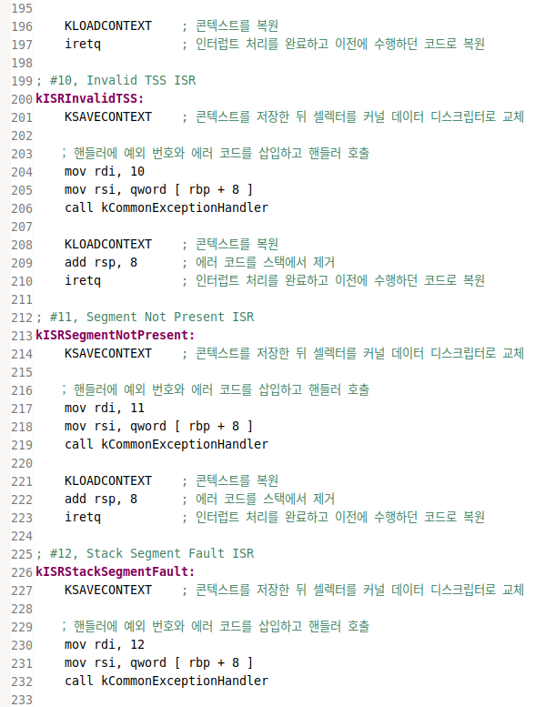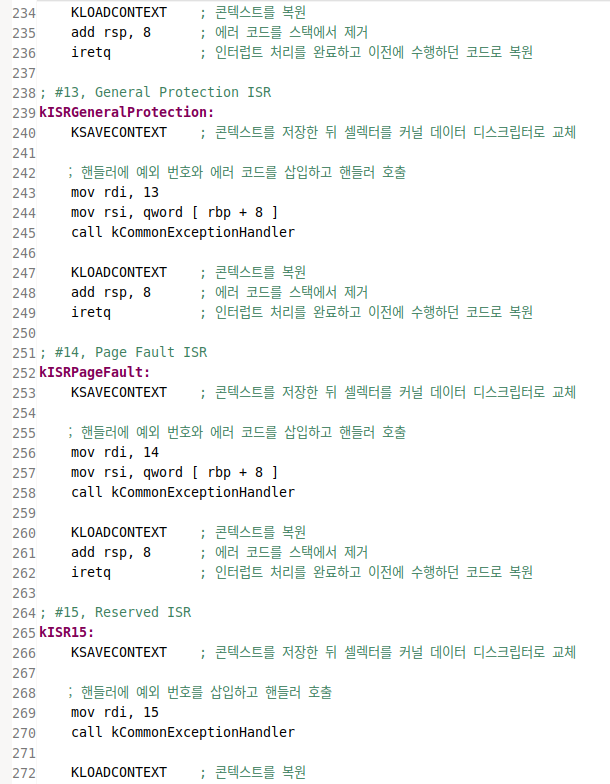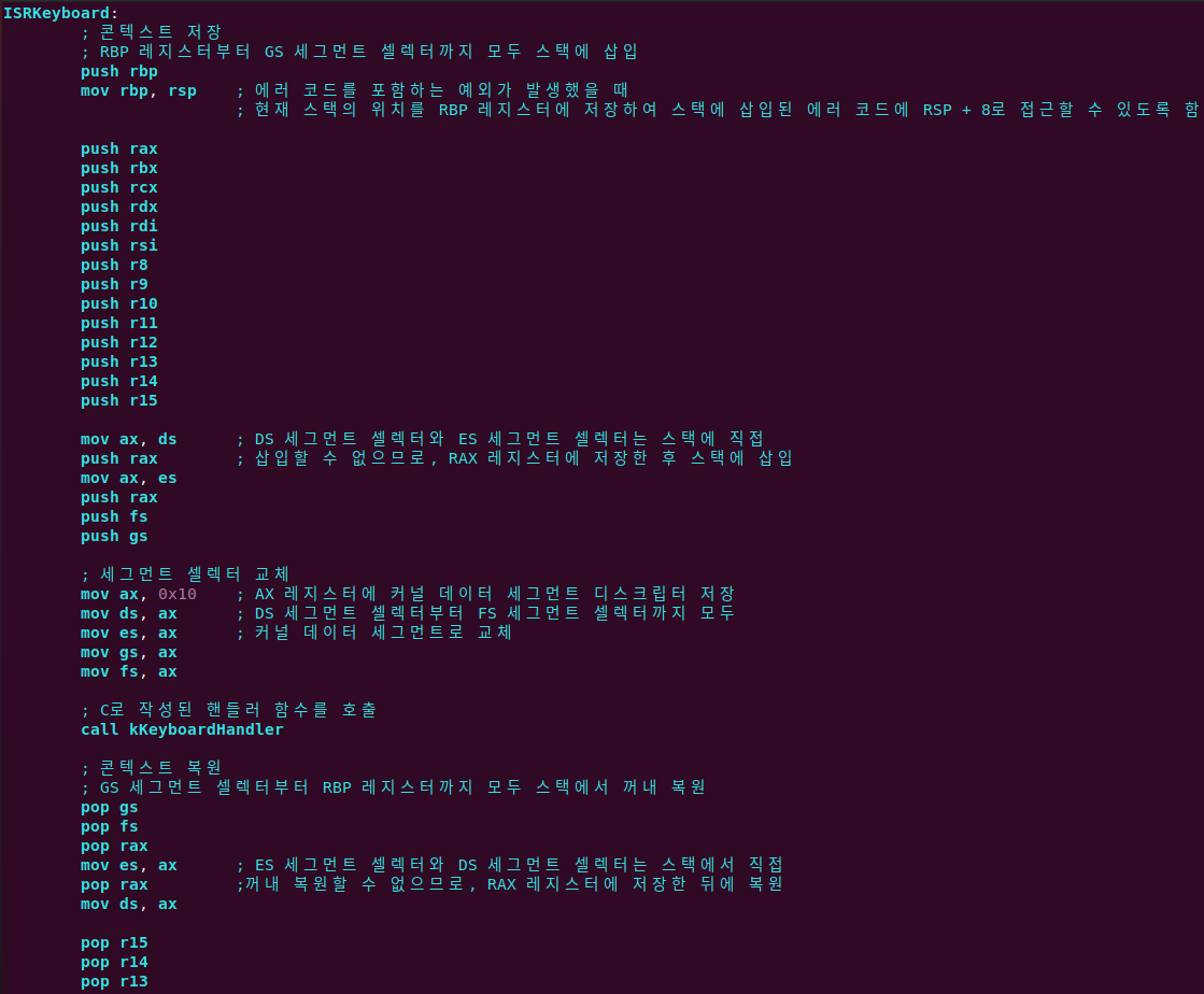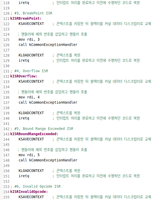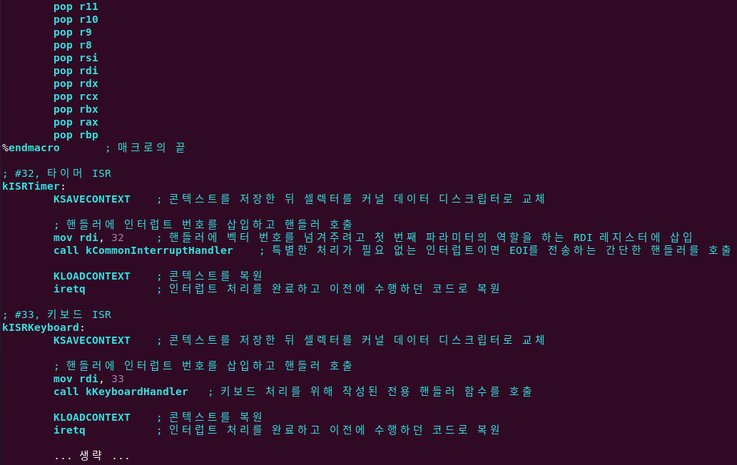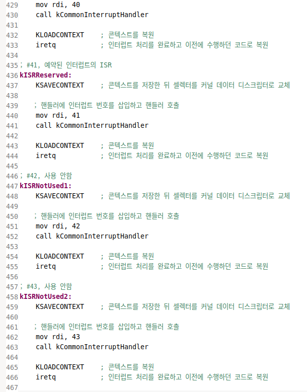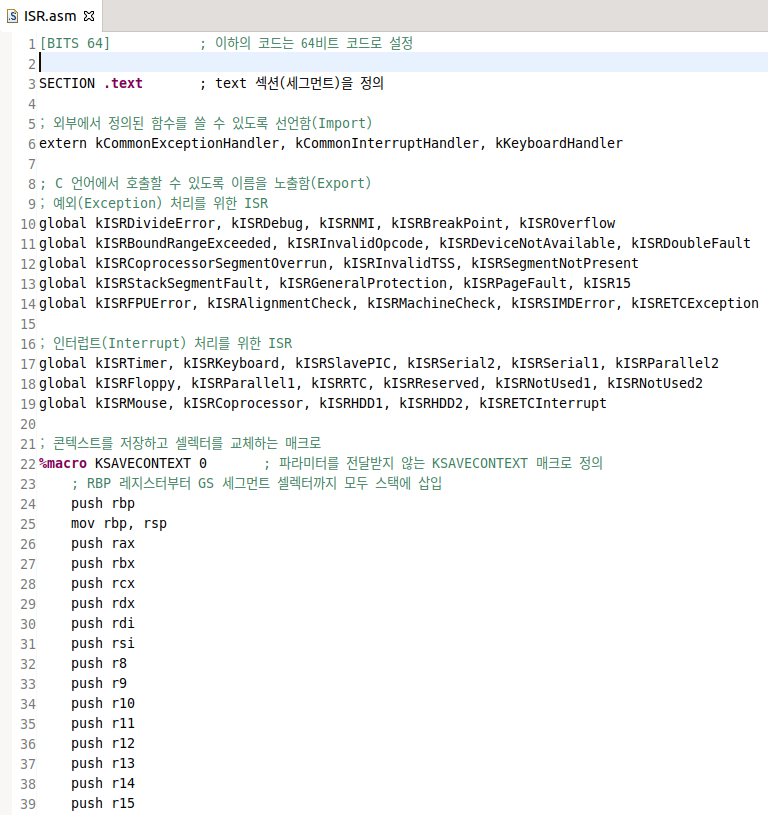 ISR 파일은 IDT 테이블에 등록할 어셈블리어 핸들러 코드가 정의된 파일입니다.