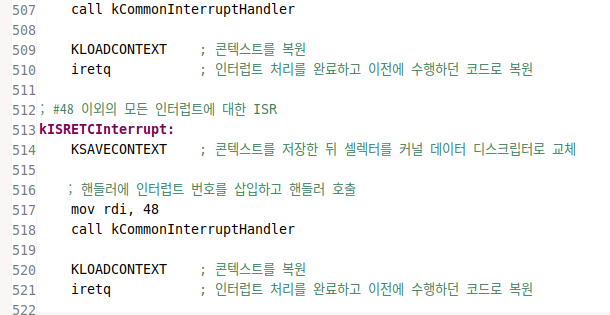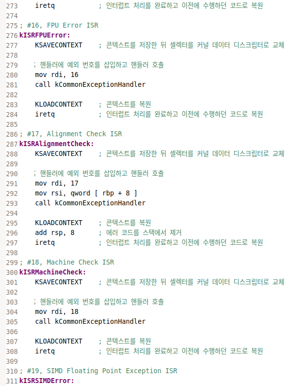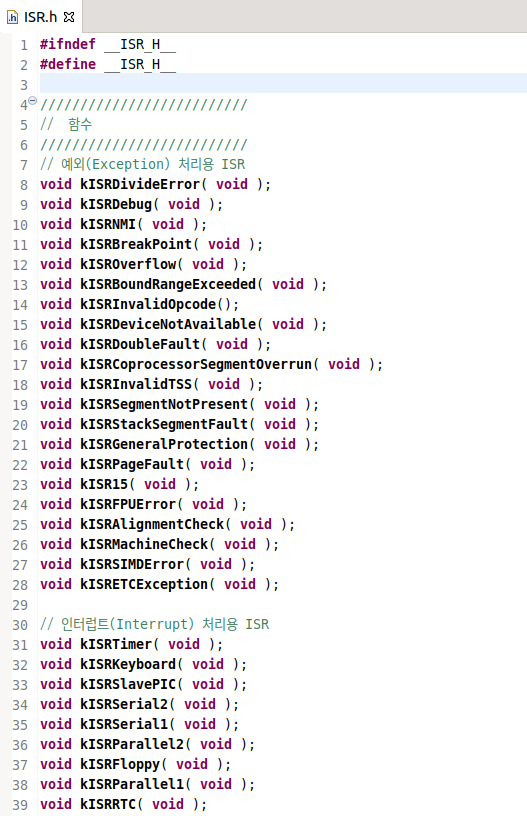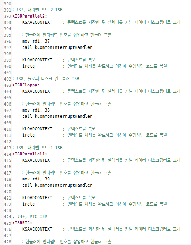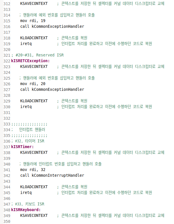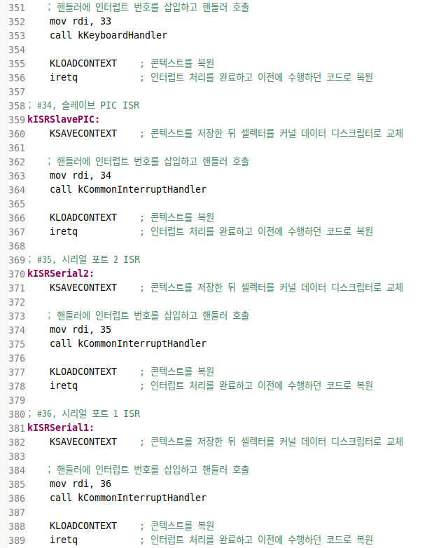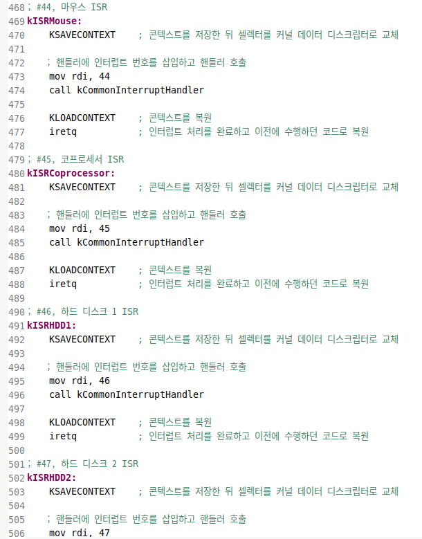 ISR 파일은 02.Kernel64/Source 디렉터리에 있으며 파일 내용은 아래와 같습니다.