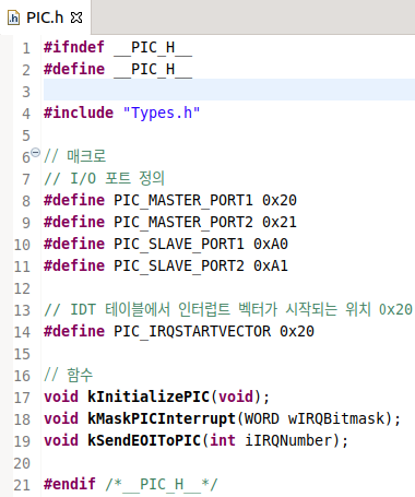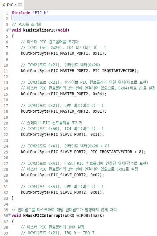 PIC 컨트롤러 파일은 02.Kernel64/source 디렉터리에 있으며 파일의 내용은 아래와 같습니다.