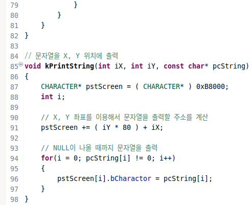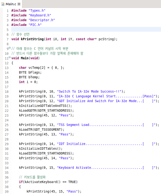 이제 마지막 단계인 C 언어 커널 엔트리 포인트 파일만 수정하면 됩니다.