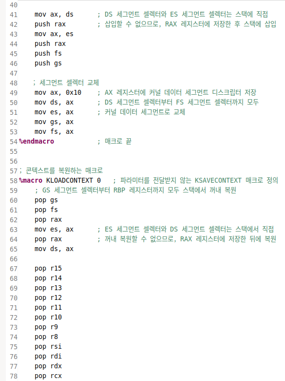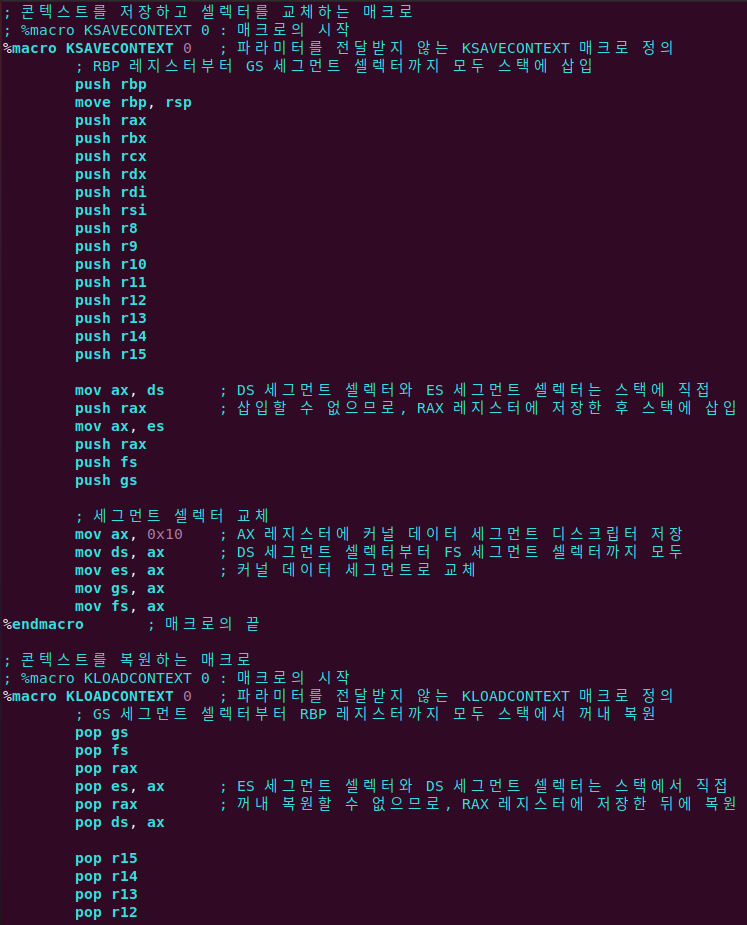 아래의 코드는 KSAVECONTEXT와 KLOADCONTEXT 매크로를 정의하여 ISR 함수를 작성한 것입니다.