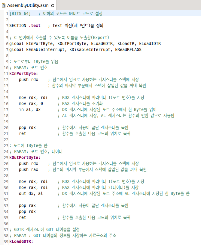 아래의 코드는 어셈블리어 유틸리티 파일의 내용입니다.