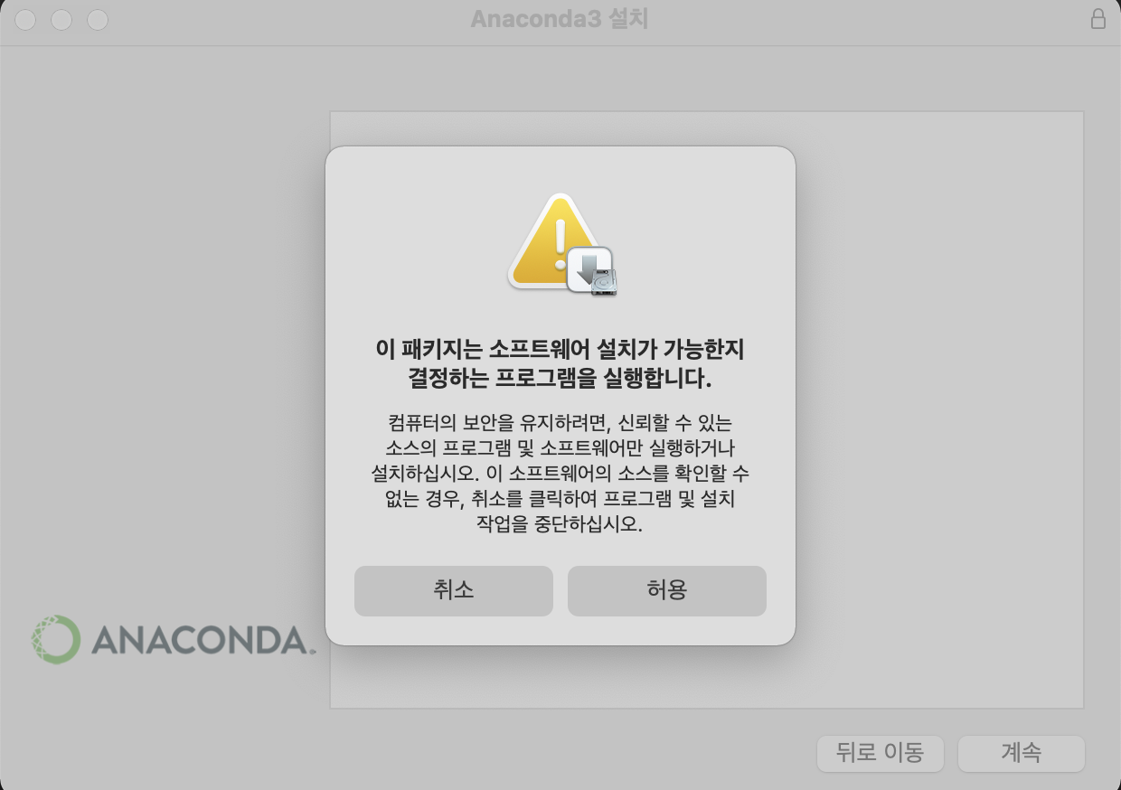 만약 설치에 실패했다고 뜬다면 Anaconda가 이미 설치되어 있을 수 있기 때문에