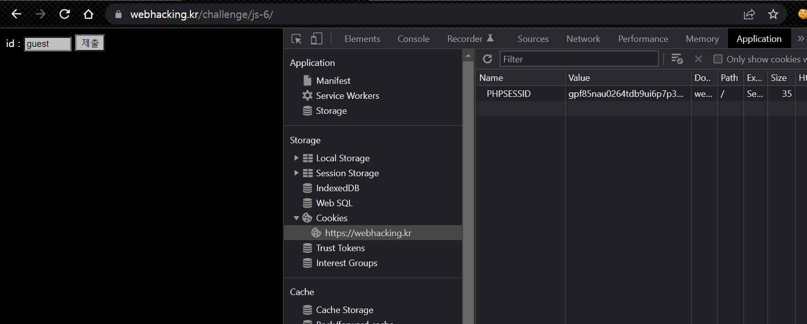guest의 첫 글자 'g' 단일 문자를 넣고 userid 쿠키를 확인하면 위의 값이 들어있다.