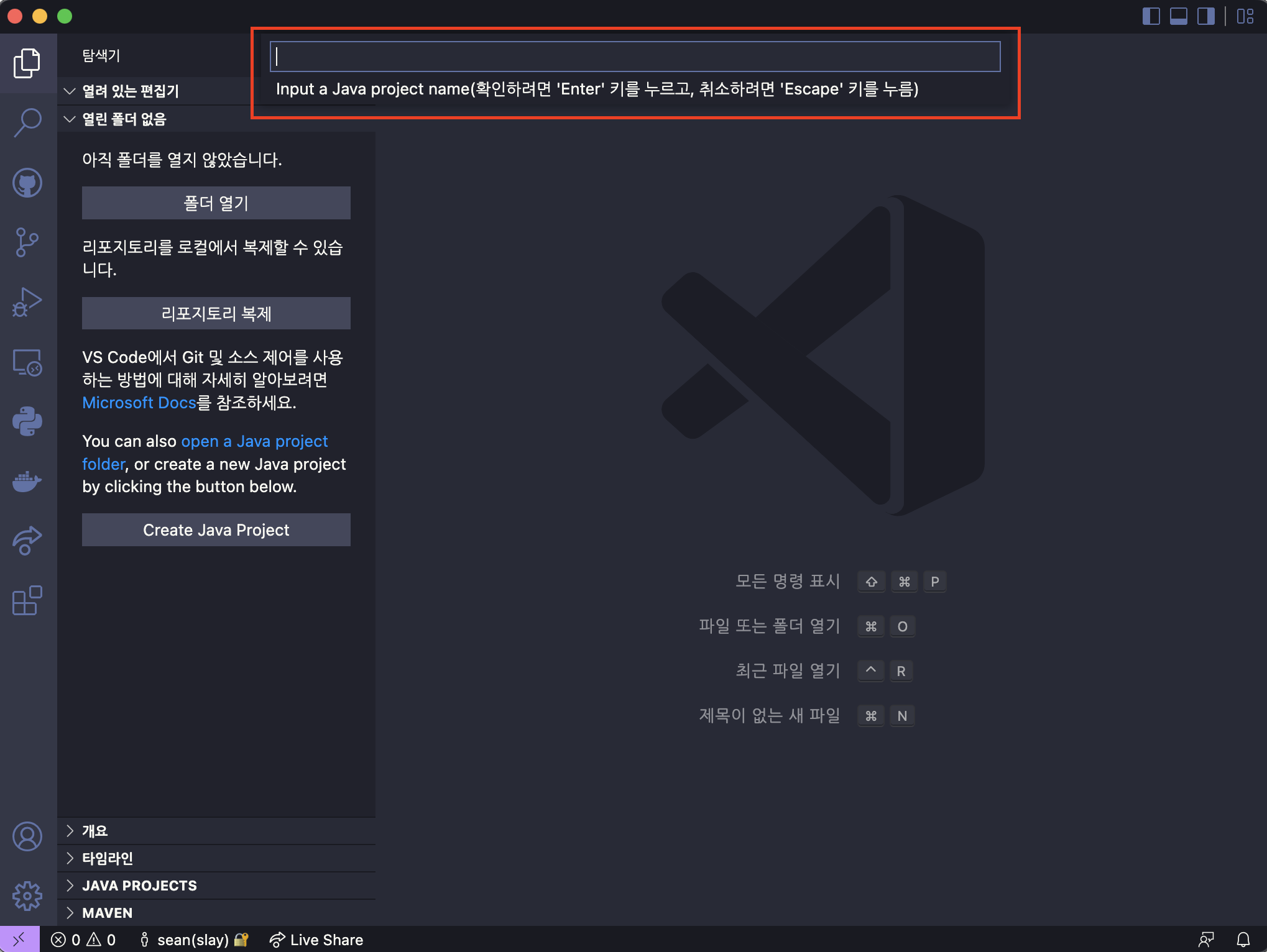 설치가 완료되면 위의 사진과 같이 Create Java Project가 생긴다.