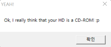 그리고 “YEAH!”와 “Ok, I really think that your HD is a CD-ROM! :P” 문구가 있다.