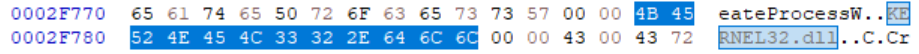 2F77E 주소로 이동하면 KERNEL32.dll이 있다.