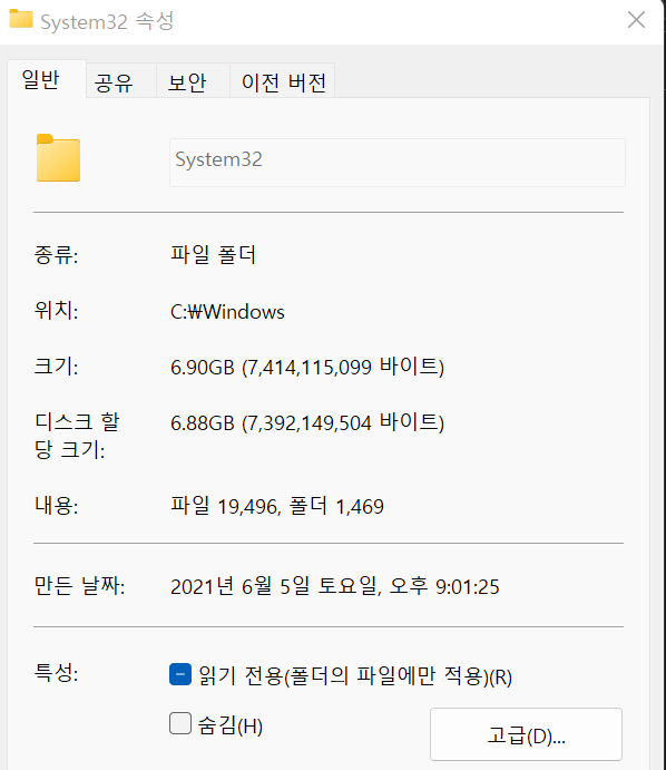 Windows에서는 C:\Windows\System32 폴더에 OS의 커널과 관련된 부분들이 많기 때문에 보안이 철저하다.
