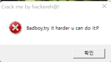 스크롤을 조금 위로 올리면 위와 같이 4011E2 주소에 “Badboy, try it harder u can” 이라는 문구가 보인다.