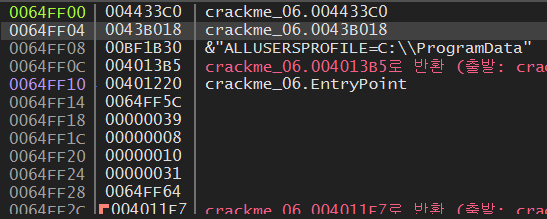 그렇다면 Password로 7F97E56C를 입력한 뒤 디버거를 보면