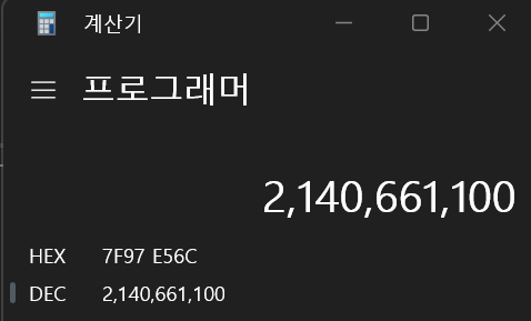 즉, 숫자로만 되어 있는 값이 16진수 7F97E56C와 동일하면 된다는 것이다.