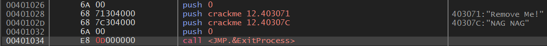 그렇다면 이 부분에 적힌 주소를 401046으로 바꾸어 ExitProcess를 호출하도록 하면 된다.