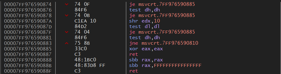 strcmp 함수 내부로 들어가면 위와 같은 코드가 나온다.