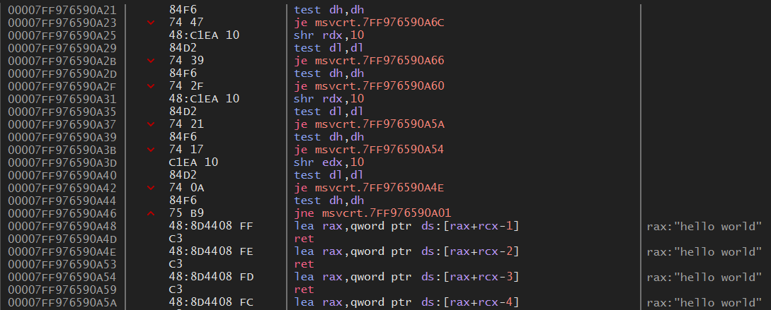 4015DC 주소의 strlen() 함수 call 명령 내부로 가면 위와 같이 나온다.