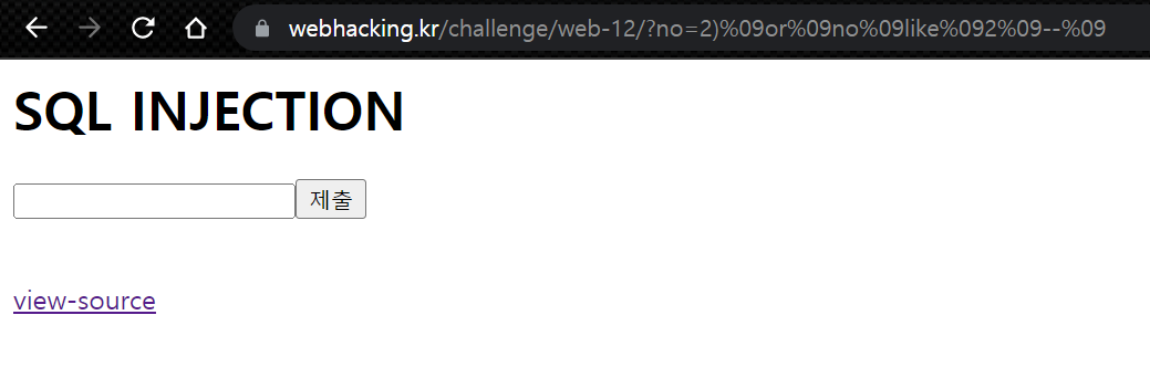 select id from chall27 where id='guest' and no=(2) or no like 2 --(공백)