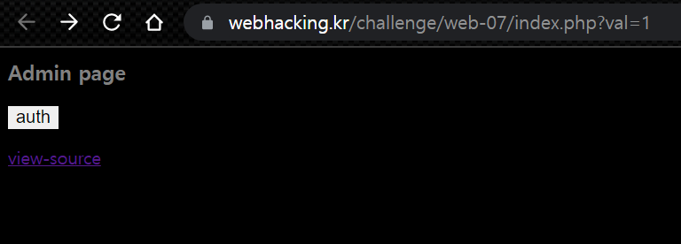 GET 방식 파라미터 val의 값을 go 변수에 담는데, val 파라미터에 값이 없으면 val 파라미터의 값이 1인 페이지로 이동되고, admin page가 뜬다.