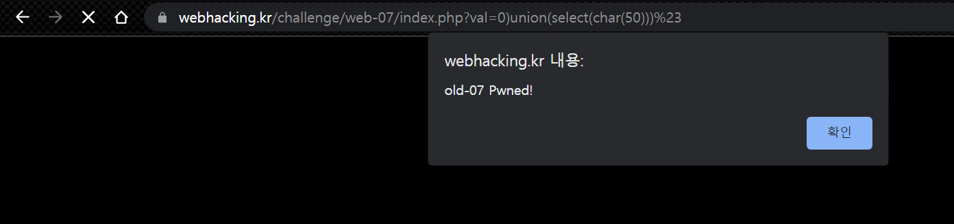 select lv from chall7 where lv=0)union(select(char(50)))%23