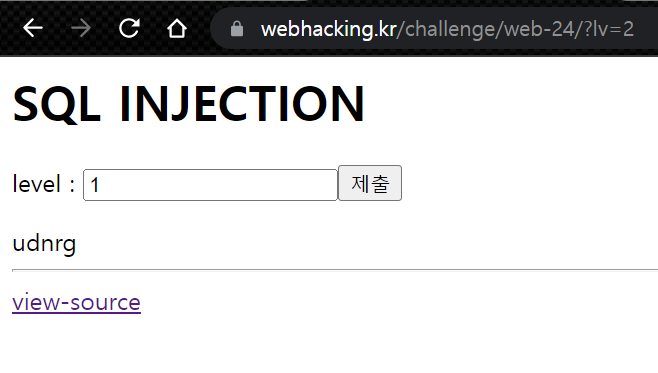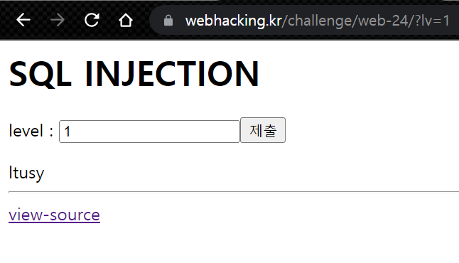 특정 문자가 없으면 lv 파라미터의 값이 SQL 쿼리문의 where 조건 절에 포함이 되어 lv가 내가 입력한 lv 파라미터의 값인 데이터의 id 컬럼 값을 출력한다.