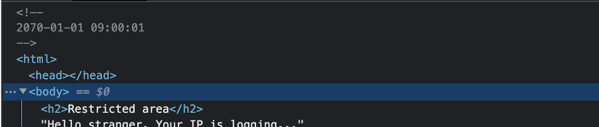 <h2>Restricted area</h2>Hello stranger. Your IP is logging...<!-- if you access admin.php i will kick your ass -->