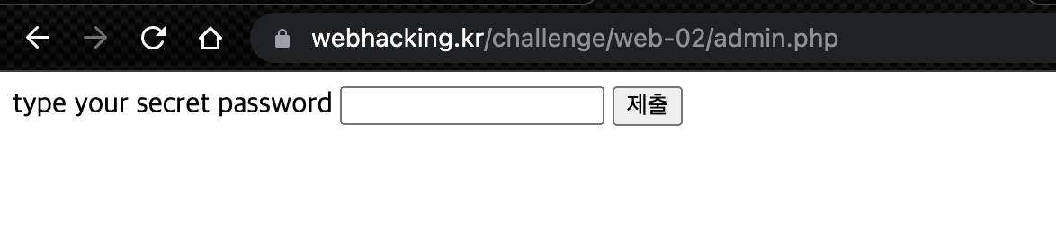 admin.php 페이지로 이동하니 위와 같이 secret password를 입력하라고 한다.