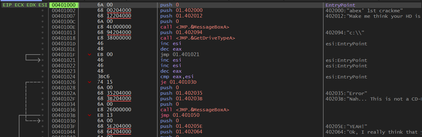 x32dbg로 문제를 열어 EP 부분을 보면 위와 같다.