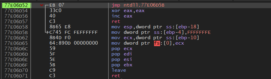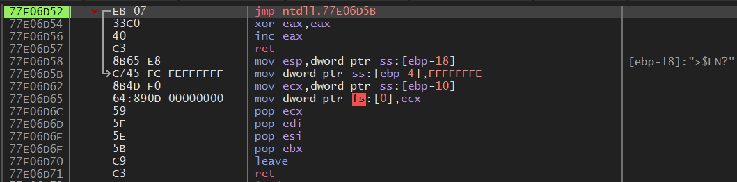 popad 명령어는 찾았지만, 바로 뒤에 나오는 EP 코드로 가는 점프문이 없다.