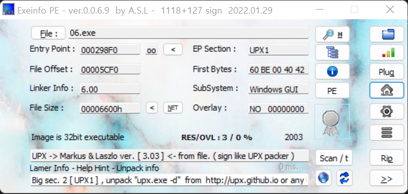 Basic RCE 06 문제는 UPX로 패킹되어 있다.