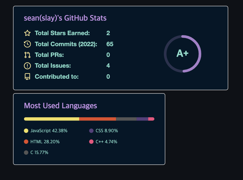 자신의 Github status 통계 Github repo - https://github.com/anuraghazra/github-readme-stats