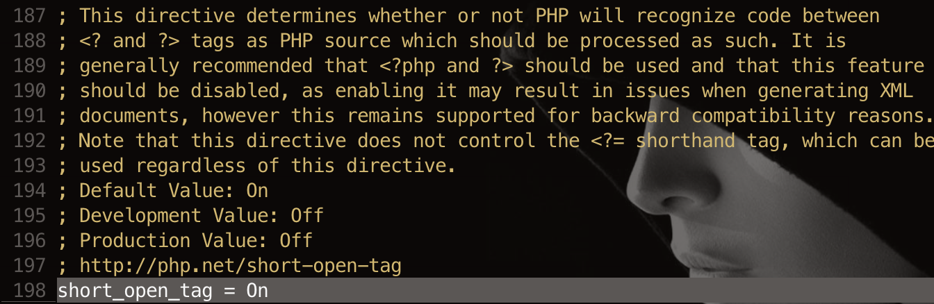 182 line : 아래와 같이 내용 추가(단, 본인 환경에서 php가 설치된 경로를 입력해야 함)