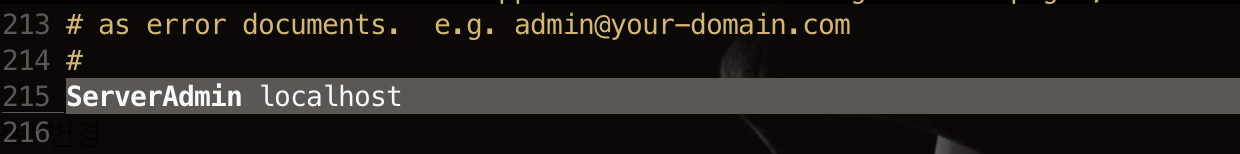 - 관리자 권한으로 httpd.confg 파일을 열어 아래와 같이 수정한다.