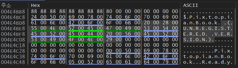 PixtopianBook 문자열 뒤 부분부터 전부 드래그 한 뒤